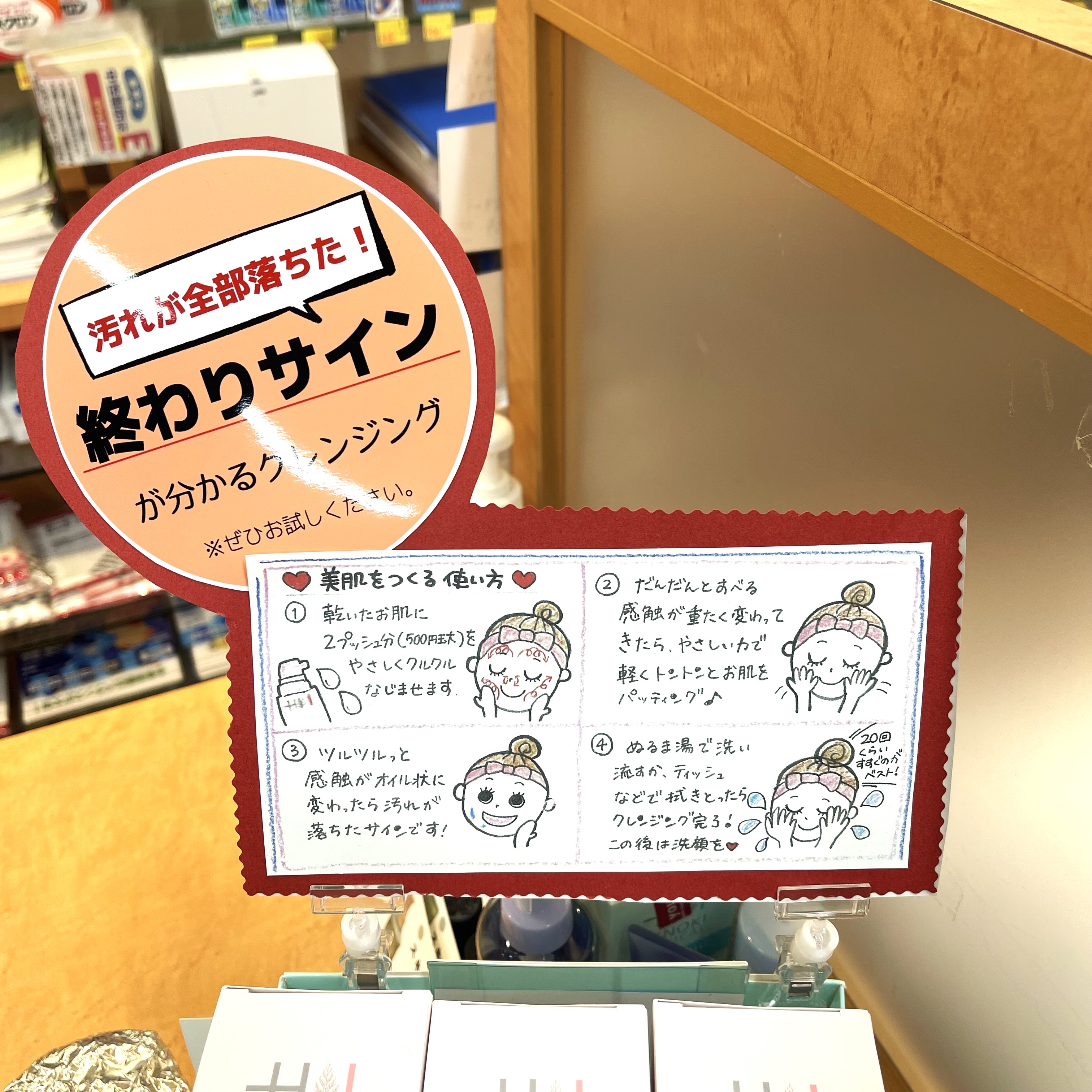 🌟店頭にて実際に手の甲を使って「終わりサインが分かる体験」や「クレンジングの効果実験」など、